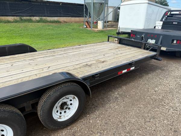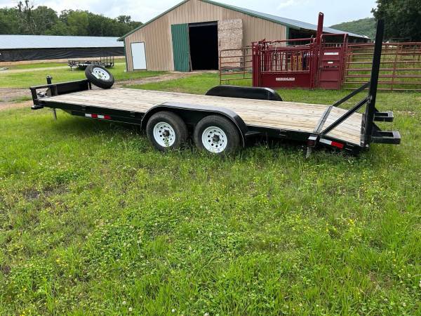 20 foot long & 83” wide OZARK Mfg. Dexter Tandem Axles, Bulldog 2-5/16” Coupler, LED lights, Brand New spare tire, Electric brakes on each axle, Electric Brake Controller. Heavy duty fold up ramps, heavy duty pipe top construction, Buddy bearings on all wheels, Excellent Condition, New Spare Tire *Pulled LESS THAN 300 miles 6000 lbs per axle or 12,000 GVWR. Clean Arkansas title.